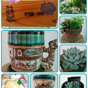 久しぶりの投稿になってしまいました😅 PTAと子ども会 役員の仕事で余裕なかったです😂 GSが写真複数枚投稿できるようになっていてビックリ👀あれ文字小さくなった? 浦島太郎状態ですが、ぼちぼちのんびり投稿します🐢 よろしくお願いします。 11月21日22日にcafeギャラリーcardenさんに行ってきました。 お目当ては、陶芸作家 簑葉信子先生のマルシェ🐈 22日は、陶芸作家のちいこさんと多肉屋1HAさんも出店されていて、とーっても賑やかでした😊🌱 陶芸の鉢を買って、多肉も買って、寄せ植えも教えてもらってほんと楽しかったー🩷 上段 左のフェアリーカップ鉢と 下段 真ん中の猫ちゃん鉢が私の作った寄せ植えです🍀 多肉屋1HAさんや、ご一緒した方々の楽しくワイワイ寄せ植えを作る姿を見て、いっぱい刺激をもらいました🩷 今でも余韻に浸って、ニヤニヤしています🥰 明日からも頑張るぞー💪
