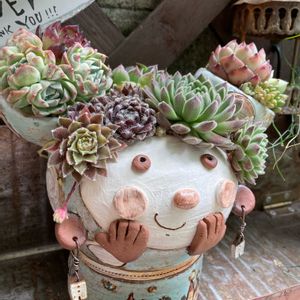 Minohaさんの陶芸鉢✨ 名古屋でのイベントで欲しかった鉢のひとつです🎶 寄せ植えしてみました🥰 あたまの部分にはセンペルビウム。 左右のお団子の部分にも排水穴🕳️があいているので多肉を寄せ植えしてみました。 こんなに大きな陶芸鉢は初めて。 楽しかった〜😆 前picにバースデーメッセージをくださった皆さま、いいねをくださった皆さま、ありがとうございます😭 さらにしあわせな1日になりました🎂✨ 昨日も仕事。その代わり、月曜日が代休🎶 来週は雨続き。 そろそろ梅雨ですね☔️😞☔️