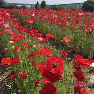 おはようございます😃 荒川河川敷の平井大橋付近では毎年この時期はポピー、秋にはコスモスと目を楽しませてくれます☺️ すこし上流の方に植えてある桑の実もそろそろ食べごろかしら?😋