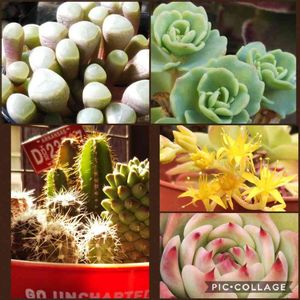花粉症、鼻の症状は年々出なくなってきたんだけど(老化かなㅠ_ㅠ)目が、目が······🍳🍳顔も痒い ↖️五十鈴玉 象の足っぽいシワが😝でも元気!ちょっと葉っぱ増えたかなー❓❓ ↗️斑入りミセバヤが芽生えてきたよ~💗斑がまだぼんやりしてるねぇ、寝起きかな ↙️昨年HCの処分価格サボ達を救出後、寄せ寄せした鉢 色が変な子いるけどー···トゲトゲキラキラ✨✨カワイイカワイイ ➡️薄化粧の花🌟 🌟星みたい ↘️確か200円くらいでちっちゃな子の時に狩ってきた桃太郎 いい子に育ってきた!( ๑´•ω•)۶ヨシヨシ🌱♥