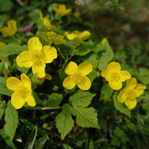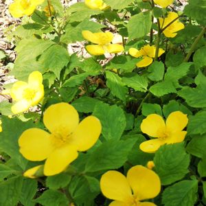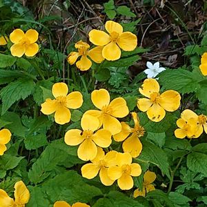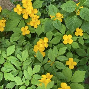 🏷日曜ビタミンカラー♪ 🏷幸せの黄色いお花 黄色いヤマブキソウの花が沢山咲いています。 ヤマブキの花に似ているので名前が付けられました。 別名 クサヤマブキ ヤマブキは花びらが5枚、 ヤマブキソウは4枚です。 花も大きくて3cm〜4cm位あります。 草丈 30cm位 ケシ科 クサノオウ属
