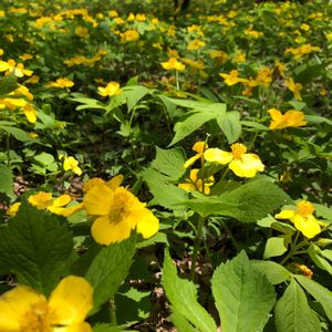 ヤマブキソウ🌼と ラショウモンカズラの群生🌿 天狗山 5.5