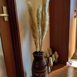 パンパスグラスをミルク缶に入れてみました。 薄暗い玄関に温かみがでたような気がします🌻