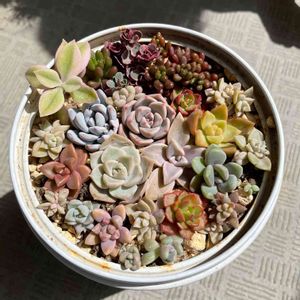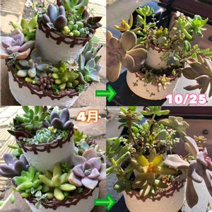 2段ケーキの寄せ植え 夏越してこんなみだらに(⊙ꇴ⊙) でも生き残ってるだけでうれしい😊 また寄せ植えしなおせばいいんだもん