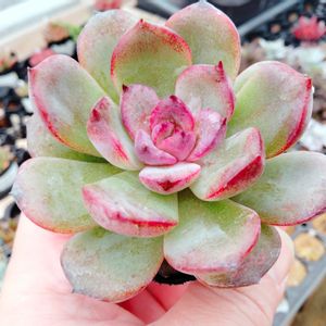 記録🙏 右側は到着したときにもアップしてますが、 第二弾購入分と合わせて植えたので✨ 成長点の葉っぱが枯れてた?ベガ ちっさい成長点付近の3枚が枯れました😰 これからどうなるかなあ、様子見です。 スェリン、キャラリアン、ピンクパンダ、どれも葉挿しをちょうだいしたので、少し小さくなっとります。 あ、トロムソ入れ忘れちゃった😅 ベルベットロイは双頭だったので、分けました👍 遮光ネット外せないくらいお天気ですねー😅