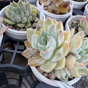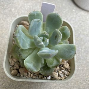 pic1:2022/12/10 ジョイフル本田千代田店 で催されたDOLCE'S succulentの即売会 にて入手した時の写真📷 カッチカチな結構大柄でボリューミーな苗💪 pic2:2023/09/05 順調に育っているように見えていたが、下葉が変色からのジュレ出す症状が現れたので緊急処置の胴切りを決行した時の写真📷 根っこが茎のごく一部からしか伸びていない事が判明😩 pic3:2025/04/07 胴切り後、地道且つ過保護気味に養生しながら育成し、漸く3度目の植え替えを終えた後の写真📷 この時点では、茎の全周から発根しているのを確認できた😆 小振りにはなったけど、現在順調に成長中😍