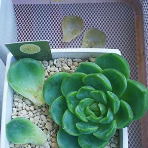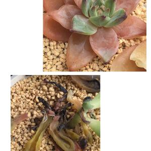 エケベリア属ロメオルビン ご無沙汰してます(;^ω^) この夏の犠牲者です。 調子が悪くなった子の中でもかなり重症です。 ジュレた葉っぱと茎と根の処理の画像は撮り忘れました。 根は切ってしまったので残った葉と茎がどこまで耐えて新しい根を出してくれるかが勝負ですね。 また経過を報告したいと思います