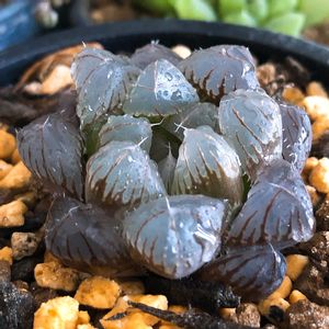 静岡のマダムからサプライズでハオルチア等々が届きました😭✋ わてしが最近ハオ沼にハマってるのが風の噂で県をまたいだみたい(〃艸〃) このハオさん、名前が喉ちんこまででかかってるんだけど出てこない! GSで似たの見たことあるんだけどなあ🤔✨ 窓に縦筋が入る子沢山美人🥳 もう何時間でも見てられる(;//́Д/̀/)'`ァ'`ァ いくつか花芽が同時にあがりそうなので、種作れるかやってみよ🥳✨