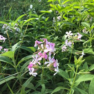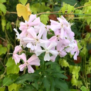今頃咲くのかな⁉️ 薄いピンクのサポナリア🎶 葉だけなら、フロックスですが🎶