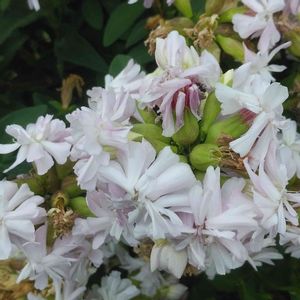 【サポナリア】《ナデシコ科》 花言葉 「友の思い出」「清らかな二人」 和名 ・別名 石鹸草(しゃぼんそう) サボンソウ ソープワート 道灌草(どうかんそう) 日本には明治時代に薬用の植物として初めてやってきました。 草丈は50cm~1mほどで、甘い香りがし、大きめの花が咲きます。 サポナリアにはサポニンという成分を含んでおり、葉を水につけて30分ほどもむと、泡立ち、これを石鹸として使うことが出来ます。 サポナリアのsapoはラテン語で石鹸を意味し またハーブとして使われることもあります。