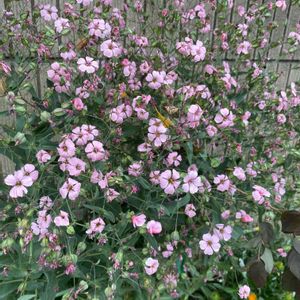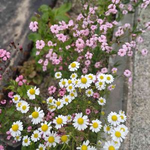 近所の方にカスミソウと言われて頂いたおはなですが、調べるとサポナリアのようです🧐 ジャーマンカモミールと一緒にたくさん咲きました🌼かわいいピンク色です🤗