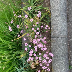 繊細な細い茎が地面を這うように伸びてきて、とうとう🌸咲きました。 自分では選ばない花色だけれど、1㎝も無さそうな小花だからアクセントになってよいかも🌸 サポナリア (ソープワート) (覚書)西側に3つ