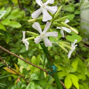 茎丈が高く白い花をたくさん咲かせます。 高く伸びるため、たおれがちですが、横たわったままでも上に伸び花を咲かせる丈夫な花です。