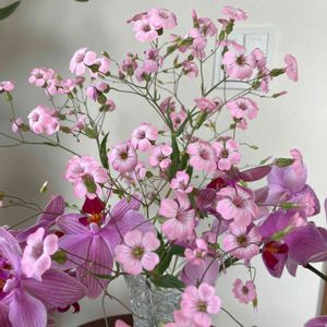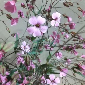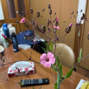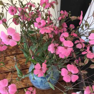去年秋、畑に直播きにしたミックスシード「ワイルドフラワーハイドロカラーミックス」だったかな?からもりもり育って雨で豪快に倒れまくってたお花を思い切って切り花に。ボリュームすご…😳これサポナリアで合ってますか?カスミソウを巨大にしたような😅きれいだけど、このピンクはそこまで好みでないかもです。白花のサポナリアの方がいいけど、そちらは2株くらいしか咲かず、このピンクとストロベリートーチの勢いがすごすぎて、畑が赤い😂