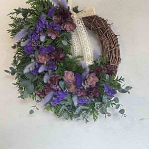 こんにちは😊 昨日は、ドライフラワーリースのWSへ行きました❣️ お友達がパープル好みで、パープル中心💜 初めてのドライフラワーでのリースですが、ワイワイ楽しくあっという間の2時間でした🎶 ユーカリも入ってるので、いい香り💚