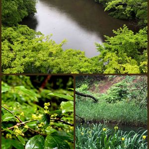 雨の日☔️お散歩 コマユミの花もしっとり濡れて✨✨池のほとりにはキショウブが咲いていました💛