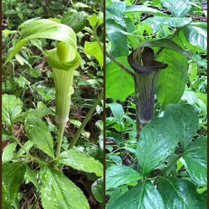 🌿🌿マムシグサ🌿🌿 若い個体と成長した個体🌿🌿 たくさん生えてました 本物の『マムシ注意』の札もあちこちにありました🐍