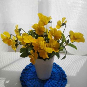 こんにちは🌼 切り戻したビオラさん✨ 残り物の毛糸で編んでみました💙