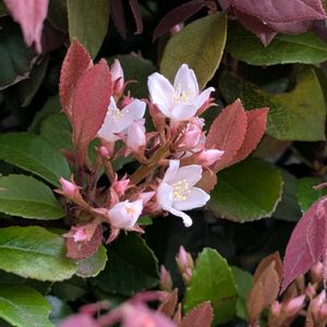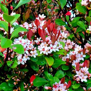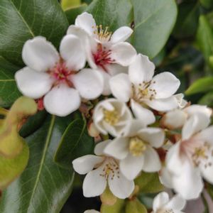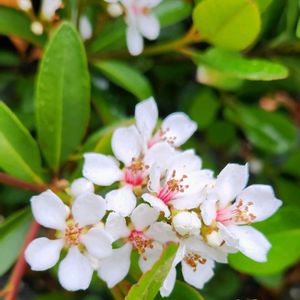 「モッコクモドキ・(オキナワシャリンバイ)」 4月25日PM0:08 ✧p📷qω•,,´)パシャ✧ 仕事先お客様の敷地内で撮影 前日から気になっていた花 この日は沢山咲いていたので✧p📷qω•,,´)パシャ✧しました。 名前が分からないので、Google検索したら、モッコクモドキと出て来ました。 低木でバラ科の様です。 良い香りがするとネットには出ていたのですが、香りが無かったです。🙄何で? と思ってもう一度調べたら、夜になると香りが強くなるそうです。 残業はしたくないな‼️ꉂ🤣𐤔