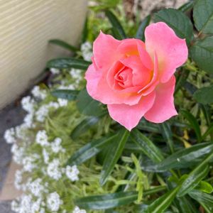 もう一つ、ここにも薔薇さん✨🌹✨ 優しいお色です💕 株元は、スーパーアリッサム🥰 🏷水曜日ローズショーに参加させて頂きます😊