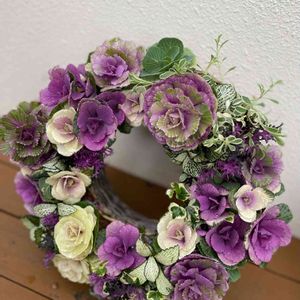 こんにちは☺️ 🧚♀️葉牡丹のリース🧚♀️ お客様依頼の葉牡丹リース💐 お世話になっているお習字教室へのプレゼントだそうです💕 し落ち着いた感じの仕上がりになりました🥰 喜んで頂けますように✨💕✨ 素敵な午後をお過ごしください🍀