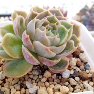 セデベリア属 『グリーンローズ』韓国苗 Sedeveria 'Green Rose' 夏はグリーンで、ぱっかん気味。 冬は、エッジの色がピンクで丸まりやすく可愛くなります。 色も形も冬が好き♥♥♥ アガベのホリダも上に向かって閉じたほうがタイプ♥ 静夜{デレンベルギー} Echeveria derenbergii × 薄化粧{パルメリ} Sedum palmeri セダム属とエケベリア属の「属間交配種」のようです。 知らなかった👀✨
