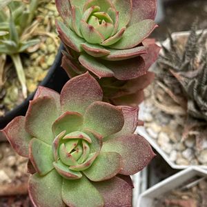 神秘的な美しさ😸💕 セデベリア・グリーン・ローズさん😻💚💗🤍 セダム・薄化粧さんと エケベリア・デレンベルギーさんのハイブリッドです😸💖