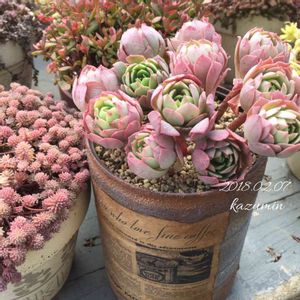 あたかも狩ったかのようにラウイ様をアップして失礼します💦 主人(単身赴任中)の赴任地に行って、2人で入ったお店に多肉がたくさんありました。 綺麗だけど高価なラウイ様。 主人(わたしよりずっと高給取り)に買って欲しくて眺めていたら 「自分の稼ぎで好きに買えばいいじゃないか。」と言われました。 稼ぎの少ないわたしがラウイ様を諦めて代わりに狩ったのは リベンジのグリーンローズ(200円)。 グリーンローズは薄化粧×静夜説と乙女心×静夜説があるけど どっちなんだろう。 とにかく本気出せばメチャクチャ可愛くなる子です💓 主人が「こっちは多肉いっぱい売ってるだろ。仕事辞めてこっちに来れば。」と言いましたが 稼ぎが無くなると多肉が狩れないので嫌です💦