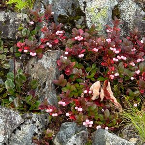 岩綾に 鈴なりに咲き 紅くなる アカモノ シラタマノキ