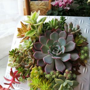 🍀タブロー寄せ🍀 今日もピーカン🌞 多肉さんが増えたのでタブロー寄せに挑戦❣️ ダイソーリメイクシートで、お正月用に買った寄せ植えのタブローを変身(*´罒`*) 実際に作ったのとは上下逆に置いて撮影📸 バランスが難しいわ💦