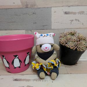 🙇売り切れました🙇 販売用です🎶No.4 リメ鉢 3.5 号鉢 まつぴよさんが、保護猫募金の為に作ってくれました。 ソクモン🐒ちゃん 猫耳の帽子を被っています。 ジョイスタロック錦 2200円(送料別) 第四種郵便速達にて発送予定です。 梱包後に送料込の金額を連絡させて頂きますね。 リメ鉢は、防水加工はしていますが、雨ざらしにはしないで下さいね。 木曜日の発送になります。 宜しくお願いします🙇