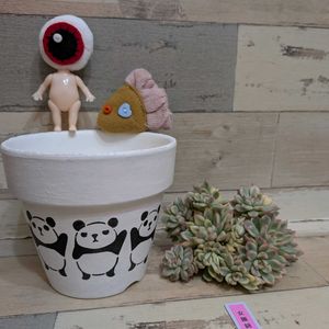 🙇売り切れました🙇 販売用です🎶No.6 リメ鉢 3.5号鉢🐼 まつぴよさんが、保護猫募金の為に作ってくれました。 目玉オヤジ&お魚さん 女雛錦 1600円(送料別) 第四種郵便速達にて発送予定です。 梱包後に送料込の金額を連絡させて頂きますね。 リメ鉢は、防水加工はしていますが、雨ざらしにはしないで下さいね。 木曜日の発送になります。 宜しくお願いします🙇