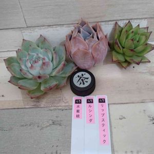 🙏売り切れました🙏 ☆月曜日の発送になります。 多肉セット 3 水蜜桃 ルシンダ リップスティック 水を切っていますので、下葉がシワっていますが、植えて水をあげると、戻ります。 3個セット 抜き苗での発送です。 第4種郵便にて発送します。(保証は有りません) 心配な方は、ゆうパックをお勧めします。 兵庫県からの発送です。