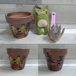 🙇売り切れました🙇 😸保護猫募金の販売になります。 №1 PANDAちゃんからの、トラ🐯のリメ鉢(2.5号鉢) タイヨウさんからの、ネコちゃんのマスコット ブランディティのセットになります。 1000円(送料別) 月曜日以降、第4種郵便にて発送の予定です。 売上は、保護猫募金にさせて頂きます。 宜しくお願いしまぁす🙏 PANDAちゃん、タイヨウさん、有難う💕