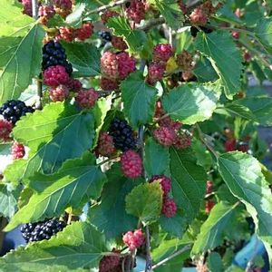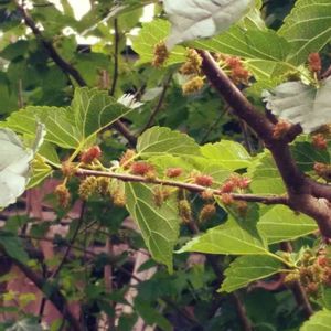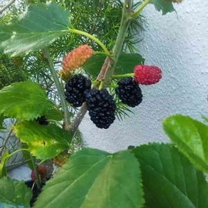 桑の実か、ブラックベリーか。赤い実もついてて、アレ?と思いましたが、お尋ねしました。うちにある桑とは思えなかったのです。うちのは、混雑してる場所にあり、伸びてくるとバサバサ切っていて、実らせたことなかったのです。マルベリーという名前と一致しなかった!勉強になりました。