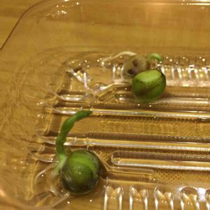 豆ご飯を作ろうと買ってきたグリンピース よく見たら、芽らしきものが伸びている子を見つけたので、水に浸してみました🌱 そしたら、ニョキニョキ ニョキニョキ🌱 芽と根が伸びてきています✨ これから、どうなるんだろう〜😆