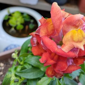 まさに金魚みたいな色合いのキンギョソウがかわいかったので衝動買い。 うちの子たちと一緒に撮影……してから気づいたけど、この子ら、金魚じゃなくてメダカだったわ(笑) 楊貴妃メダカさん。
