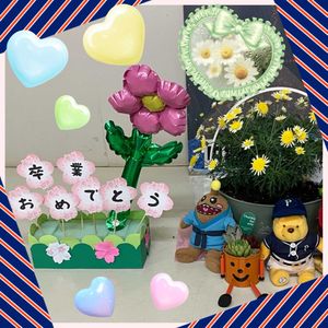 高校3年生の孫が無事卒業💕 部活の後輩達からのプレゼント❣️ 可愛いお花が飾られてました。