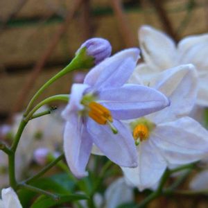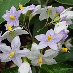 ヤマホロシ(ナス科) 7月にお迎えしてから、ナスの花に似ている星型☆のお花が 絶えることなく次々咲き続けています❧✿✿☙ 薄紫色と白い色が涼し気です💜🤍