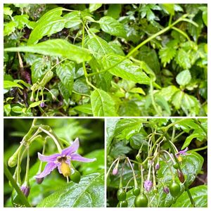 お山にて、ヤマホロシの花見つけました❤️ 🌱ナス科ナス属蔓性多年草花7〜9月 全草ソラニン含み食べられない😆 種が見覚えあります、秋につややかなオレンジ赤に実ってるのを😃 🌱でもとても似ている、ヒヨドリジョウゴの種と秋見分けられるかなあ?こちらは花は白のようです。