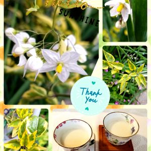 (*ฅ´ロ`)ฅ{ 花ともさぁ〜ん ヤマホロシ咲きましたぁ〜♡ 去年斑入りのツルハナナスをお迎えして 一向に咲かず✸ 花ともさんに来年はきっと咲くよ♡と励まされてたの 花木は最初は枝葉を増やすために咲かないこともあるそうです(;•̀ω•́)ムムム 今はたくさんしげしげしております 来年はアーチみたいにたくさん咲くかな〜(º ロ º๑)わぉ♡ 寒くて震えてるみなさん。こぺんちゃんのあま酒をどぞ♥🧸