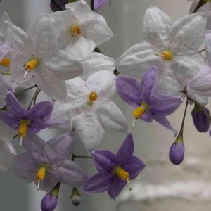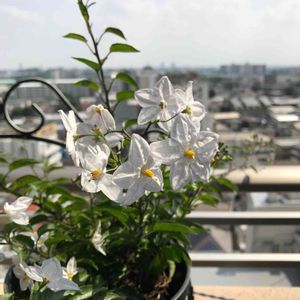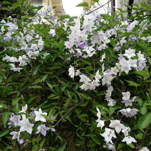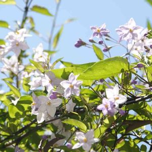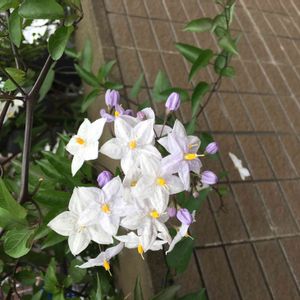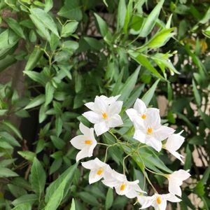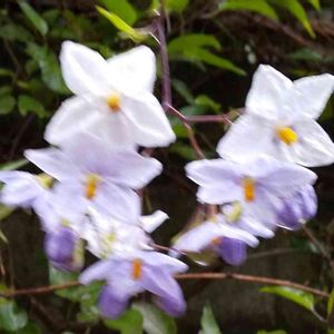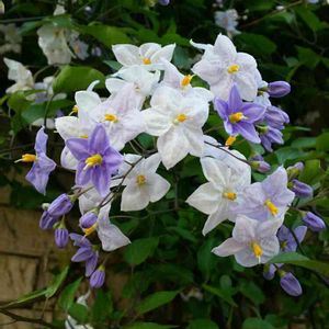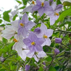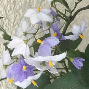 ☆ヤマホロシ☆ 今日野菜🥦🥬を求めて遠くの産直に ナスの花みたいで綺麗なお花を付けたヤマホロシ発見お値段手頃 お買い上げ✌️ 蔓性、常緑性、育て安い迄は良い💕 強すぎて周りのものが負けるって😭😭😭