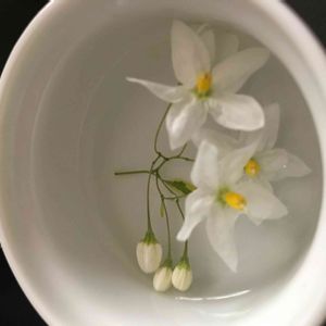 ヤマホロシ。春にぐんぐんとツルを伸ばします。小さな粒々の赤ちゃん蕾たちに寄り添う白い花は優しいお母さんのよう♫ 葉っぱに触ると豆の香り♪