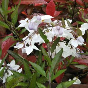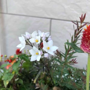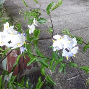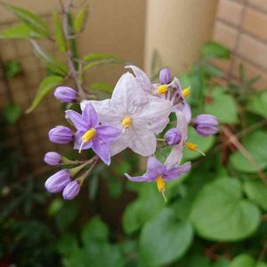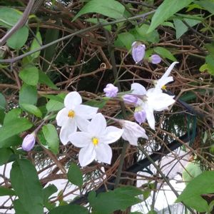 ヤマホロシ 別名 ツルハナナス、ソケイモドキ、 ソラナム ナス科 ナス属 ツル性の低木 お花の色が薄紫色から白に 変わります💜♡
