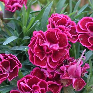 🩷 MommyKiss 🩷 前回写真を載せられなかった 四季咲きガーデンカーネーション "マミーキッス"の ピンクホワイト😘 バイカラーの模様が とっても可愛いですよね♩ 草丈20cmほどでコンパクトにまとまりながらも、 次々に花が咲き見応えたっぷり🌸 秋にも花が咲くので 長くお楽しみいただけます🙌 花苗は5月ごろまで販売中です☺️ 園芸店・園芸売り場でお買い求めください~