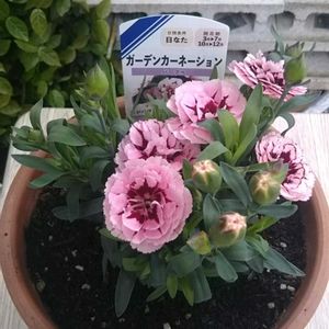 いつも行く花屋さんに寄ったら、ガーデンカーネーションが売られていました。色合いや模様が面白いなと思い、名前にガーデンと付くなら丈夫で庭植えもできるということかなと期待して、お迎えする事に(^_-)-☆。 娘からは既に別のプレゼントを貰っていたので、自分から自分へのプレゼント🎁です。(´•ᴗ• ก )՞ ՞