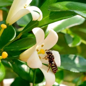 2投稿目! シルクジャスミンの花🌼とハチ🐝!🤗 おやすみなさい!😉