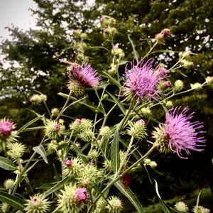金曜日に蕾だった野原薊が咲きました 自生している植物の強い事😁 トゲトゲの葉は苦手ですがユニークで可愛いお花です 花言葉は「心の成長」 🏷木曜モフモフ 🏷ピンクワールドへようこそ 参加させて下さいね🎶