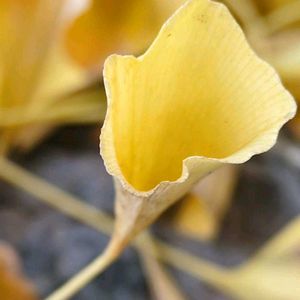 ラッパイチョウ 丹波篠山市 医王寺 8日は葉っぱの発表会🏷は1科1属1種のイチョウの中でも、まるく繋がった原始葉にご登場いただく💛 曹洞宗の小さなお寺の境内にあるイチョウ、落ちている葉を拾うと、結構な確率で切れ目がない漏斗型です(>💛 何度か登場させているこの木は、樹高 25m、幹回り 2.3m🟡さして大木ではないけれど、この形をした葉が簡単に落ちているところは、そうそう他では見つからない(^o^)v 都会ではギンナンが迷惑になるからと、特に街路樹や公園では雄木が多いけれど、そこは篠山、雌木ですよ〜🟡