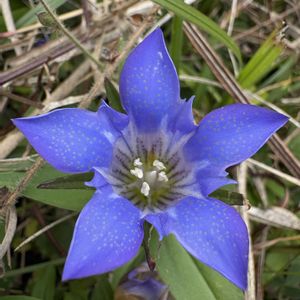 雪竜胆の素敵なお名前でも投稿させていただきます ※リンドウ科リンドウ属 別名 イヤミグサ(疫病草 古名はえやみぐさ) 本州から九州山野に生える 葉は対生、卵状披針形、先は長く尖る 花期 9〜11月 花冠は紫色⁈青にしか見えないですね😅 花びらに白い斑点があるので“雪竜胆”素敵なお名前ですね ♦︎園芸種ではなく自生のリンドウです 10月23日撮影